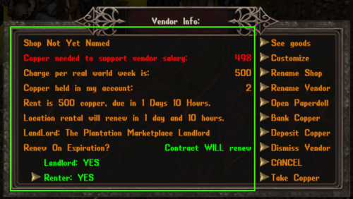 This picture shown is the vendor options to interact with on the right side of the vendor menu.