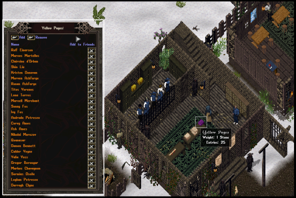 Double clicking the “Yellow Pages” book will open a gump with Characters currently registered.